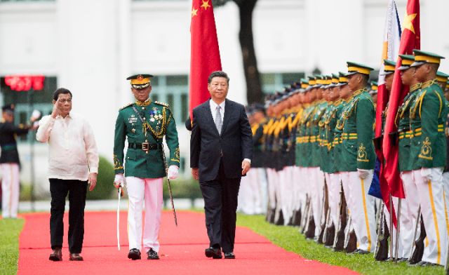 11月20日,國家主席習(xí)近平在馬尼拉同菲律賓總統(tǒng)杜特爾特舉行會(huì)談。會(huì)談開始前,習(xí)近平出席杜特爾特在總統(tǒng)府前草坪舉行的隆重歡迎儀式。新華社記者丁林?jǐn)z