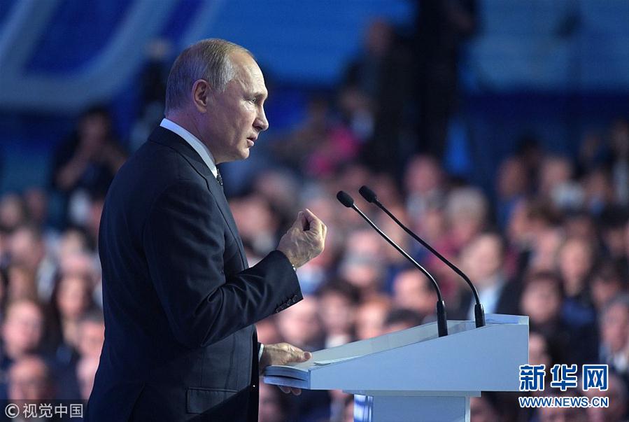當(dāng)?shù)貢r(shí)間2018年12月8日,俄羅斯莫斯科,俄羅斯執(zhí)政黨“統(tǒng)一俄羅斯黨”年度會(huì)議舉行,俄羅斯總統(tǒng)普京和總理梅德韋杰夫出席會(huì)議。(圖片來(lái)源:視覺中國(guó))