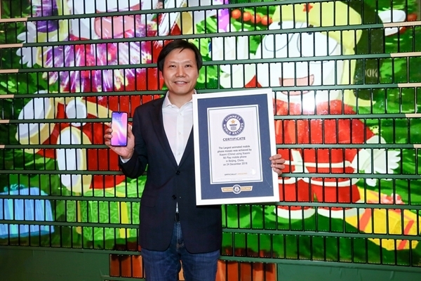 最終,雷軍攜小米團隊挑戰(zhàn)成功,獲得吉尼斯世界紀錄“最大的手機動態(tài)拼圖”稱號。
