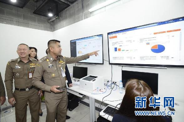 2月15日,泰國移民局局長素拉切(中)在曼谷素萬那普機(jī)場了解新版電子落地簽證使用者數(shù)據(jù)。 泰國移民局15日在素萬那普機(jī)場舉辦新版電子落地簽證系統(tǒng)正式上線儀式,以期進(jìn)一步方便包括中國游客在內(nèi)的外國游客。 新華社發(fā)(泰國移民局供圖)