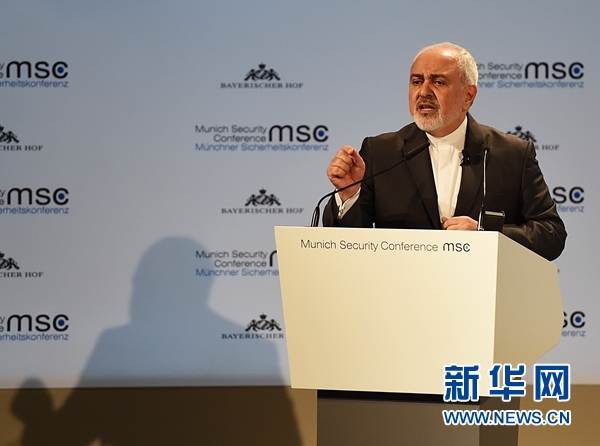 2月17日,在德國慕尼黑,伊朗外交部長扎里夫在慕尼黑安全會議上發(fā)言。 新華社記者 逯陽 攝