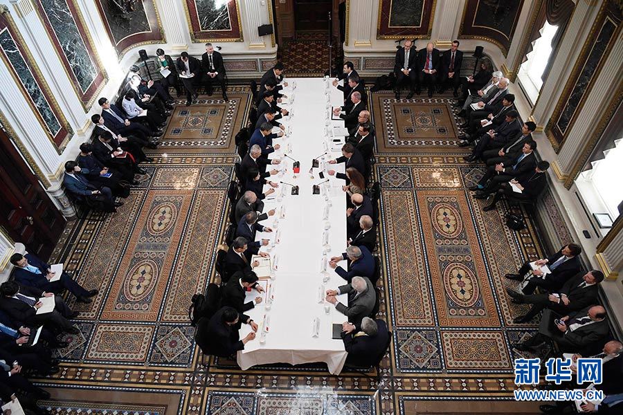 當(dāng)?shù)貢r(shí)間2月21日上午,習(xí)近平主席特使、中共中央政治局委員、國務(wù)院副總理、中美全面經(jīng)濟(jì)對話中方牽頭人劉鶴與美國貿(mào)易代表萊特希澤、財(cái)政部長姆努欽,在美國白宮艾森豪威爾行政辦公樓共同主持第七輪中美經(jīng)貿(mào)高級別磋商開幕式。 新華社記者 劉杰 攝