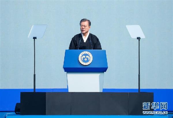 3月1日,韓國總統(tǒng)文在寅在首爾舉行的“三一運(yùn)動”100周年大會上發(fā)表講話。 韓國總統(tǒng)文在寅1日在首爾光化門廣場出席紀(jì)念“三一運(yùn)動”100周年大會時發(fā)表講話表示,韓國將力推構(gòu)建“新半島體系”,實(shí)現(xiàn)韓朝之間共建“和平合作共同體”和“經(jīng)濟(jì)合作共同體”。新華社記者 王婧嬙 攝