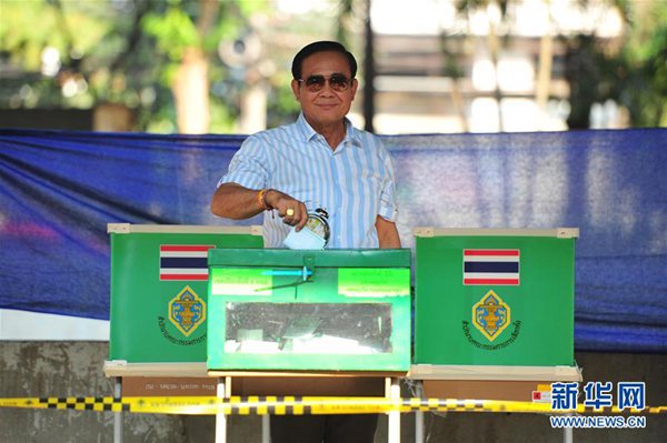 泰國(guó)總理巴育8時(shí)左右前往曼谷的一處投票站,排隊(duì)等候投票。他對(duì)媒體說(shuō),希望泰國(guó)人民參與大選投票,合理行使選舉權(quán),團(tuán)結(jié)一致,共同解決國(guó)家所面臨的問(wèn)題。