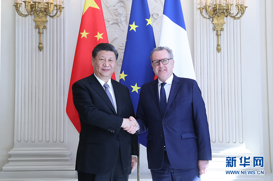 3月26日,國家主席習近平在巴黎會見法國國民議會議長費朗。 新華社記者 鞠鵬 攝