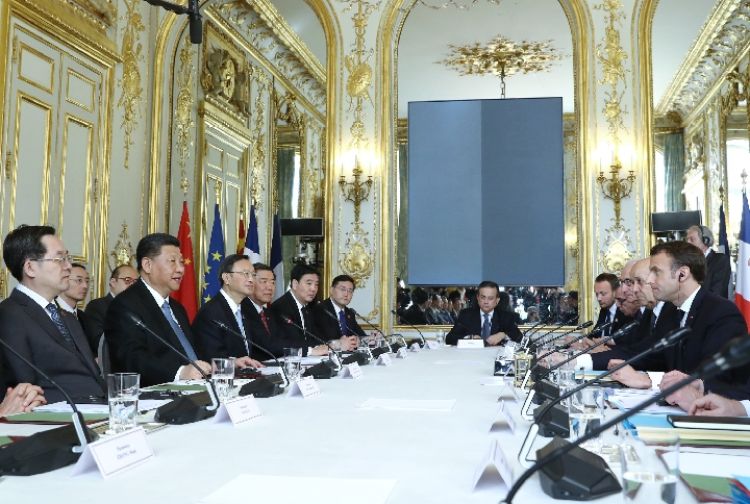 3月25日,習(xí)近平主席在法國(guó)的行程進(jìn)入第二天。兩國(guó)元首在巴黎愛(ài)麗舍宮會(huì)談中一致同意,在新的歷史起點(diǎn)上打造更加堅(jiān)實(shí)、穩(wěn)固、富有活力的中法全面戰(zhàn)略伙伴關(guān)系。