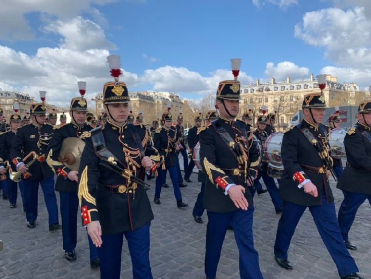 凱旋門星形廣場(chǎng)上,儀仗隊(duì)和軍樂(lè)團(tuán)整齊列隊(duì),靜候習(xí)近平主席的到來(lái)。新華社記者 高潔 攝