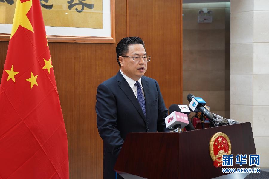 4月24日,在斯里蘭卡首都科倫坡,中國(guó)駐斯里蘭卡大使程學(xué)源在記者會(huì)上講話。 新華社記者 林昊 攝