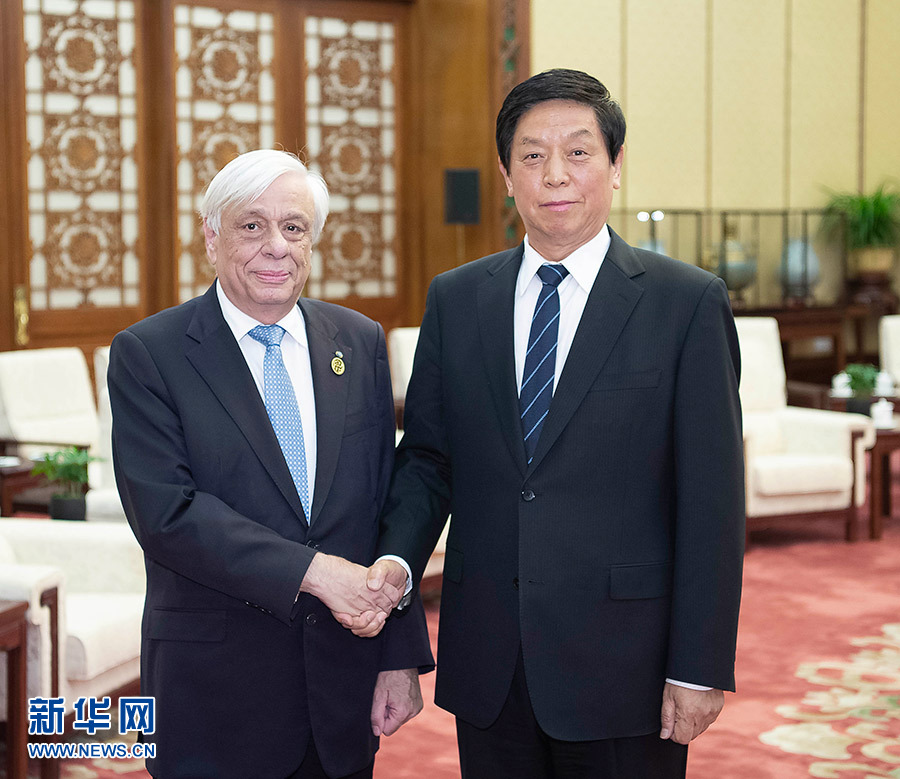 5月13日,全國人大常委會委員長栗戰(zhàn)書在北京人民大會堂會見希臘總統(tǒng)帕夫洛普洛斯。 新華社記者 李濤 攝