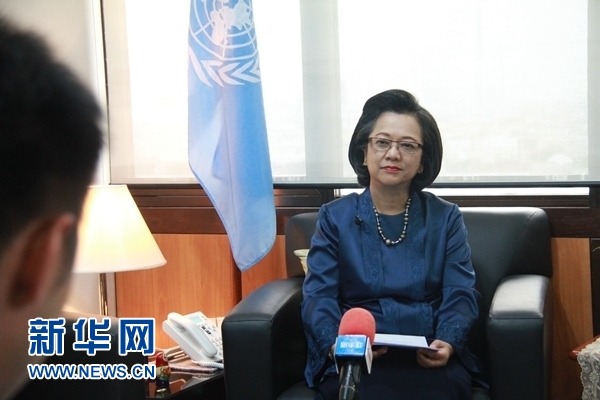 5月14日,聯(lián)合國亞洲及太平洋經(jīng)濟(jì)社會(huì)委員會(huì)執(zhí)行秘書阿米達(dá)·阿利斯夏巴納在泰國曼谷接受新華社記者采訪。 聯(lián)合國亞洲及太平洋經(jīng)濟(jì)社會(huì)委員會(huì)執(zhí)行秘書阿米達(dá)·阿利斯夏巴納日前在曼谷接受新華社記者采訪時(shí)說,70年來中國取得了全方位的發(fā)展成就,并給亞太地區(qū)帶來積極影響。 新華社發(fā)