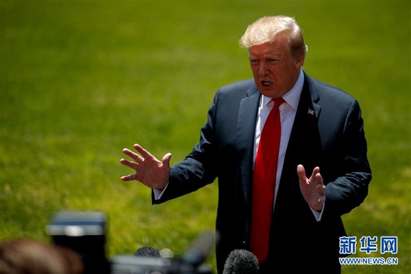 5月24日,美國總統(tǒng)特朗普在華盛頓白宮對媒體講話。美國總統(tǒng)特朗普24日說,美國將向中東增兵約1500人,主要承擔(dān)“防御任務(wù)”。新華社發(fā)(沈霆 攝)