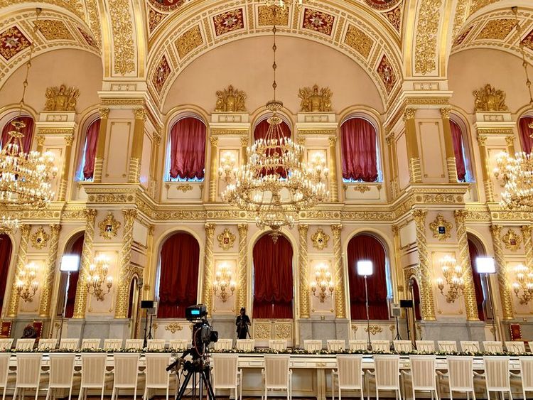 這是克里姆林宮亞歷山大廳,中俄兩國元首大范圍會談在這里舉行。新華社記者丁林?jǐn)z