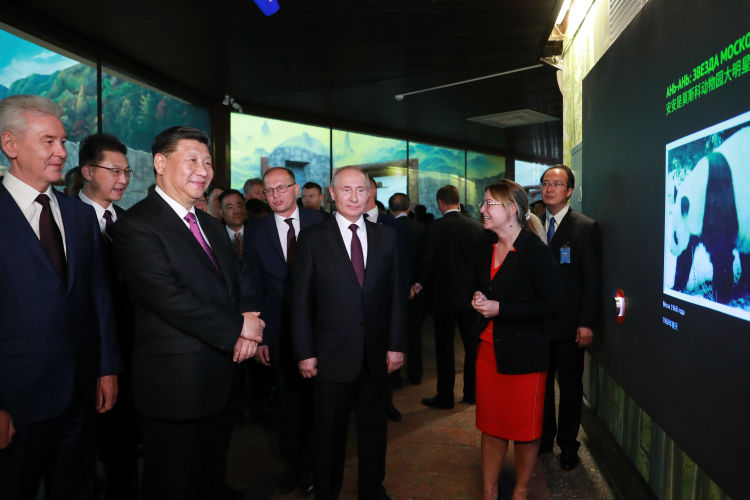 當(dāng)?shù)貢r間晚上8時許,習(xí)近平主席抵達(dá)莫斯科動物園,與普京總統(tǒng)一道出席了熊貓館開館儀式。