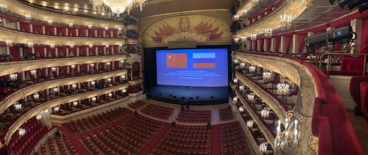 當(dāng)晚在莫斯科大劇院,習(xí)近平主席和普京總統(tǒng)還一同出席了中俄建交70周年紀(jì)念大會并觀看文藝演出。