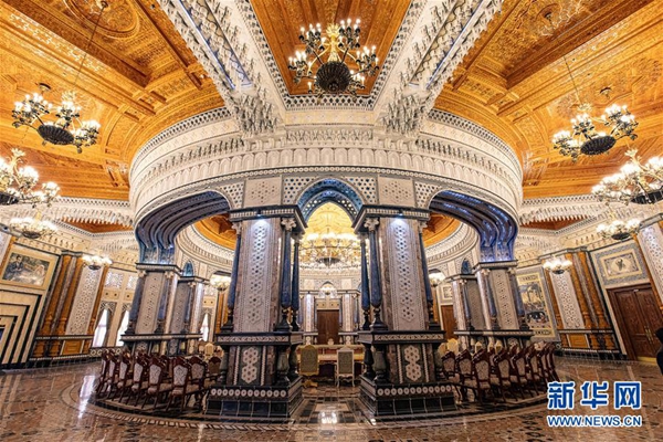 這是4月14日在塔吉克斯坦首都杜尚別拍攝的納烏魯茲宮阿爾章會議廳。新華社記者 白雪騏 攝 點擊高清圖集>>