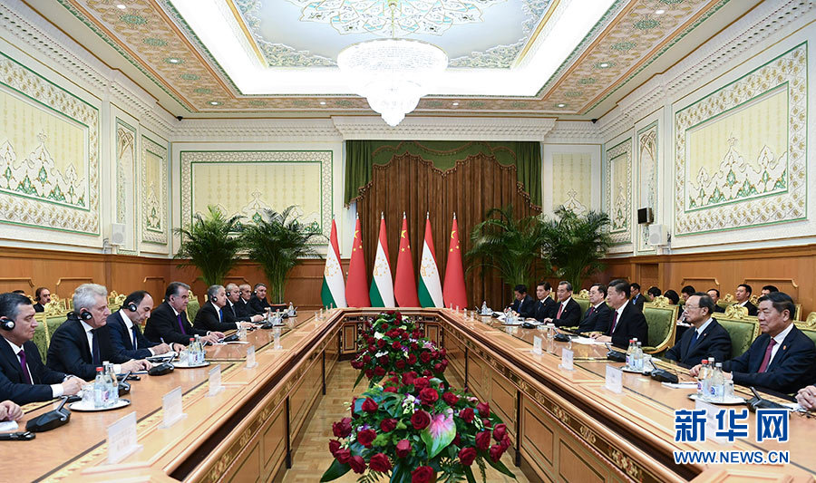 習(xí)近平指出,建交27年來,中塔關(guān)系始終保持快速發(fā)展良好勢頭。中塔已成為山水相連的好鄰居、真誠互信的好朋友、合作共贏的好伙伴、彼此扶持的好兄弟,兩國關(guān)系處在歷史最好時期?!坝H望親好,鄰?fù)徍??!敝蟹綐芬娨粋€穩(wěn)定、發(fā)展、繁榮的塔吉克斯坦,堅定支持塔吉克斯坦走符合本國國情的發(fā)展道路,堅定支持塔吉克斯坦政府為維護國家主權(quán)、安全所作努力。中方愿同塔方加強兩國關(guān)系頂層設(shè)計,提升各領(lǐng)域合作水平,共同打造中塔發(fā)展共同體和安全共同體。