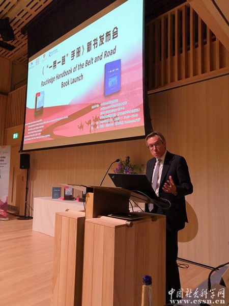 趙劍英首先對《“一帶一路”手冊》英文版的出版發(fā)行表示祝賀,作為《“一帶一路”手冊》中文版的發(fā)起者和出版方,他介紹,由中國社會科學(xué)出版社和英國羅得里奇出版社共同策劃的《“一帶一路”手冊》是全球首部以“一帶一路”倡議為主要內(nèi)容的百科讀本。這部手冊在第二屆一帶一路國際合作高峰論壇現(xiàn)場展示中獲得熱烈反響。內(nèi)容涉及“一帶一路”倡議的歷史傳承、產(chǎn)生與框架、“五路”、“五通”、六大經(jīng)濟走廊、中國特色大國外交理念、國際上相關(guān)行動計劃等11個主要部分,涵蓋近年來與“一帶一路”有關(guān)的117個詞條。這部手冊全面、完整、系統(tǒng)地展現(xiàn)“一帶一路”倡議本身及與之有關(guān)的概念和領(lǐng)域,是迄今為止一帶一路理論和實踐初步成果的階段性匯總。為促進國際社會深刻理解一帶一路偉大戰(zhàn)略構(gòu)想提供了學(xué)術(shù)引導(dǎo)價值。探索一帶一路的規(guī)律,建立規(guī)范型理論框架和恰逢其時,英文版的出版必然會為一帶一路匯聚廣泛的國際共識,為構(gòu)建人類命運共同體添磚加瓦。據(jù)趙劍英社長介紹,社科出版社在一帶一路研究英文譯介出版發(fā)行的基礎(chǔ)上,未來還將增進西語、葡語、阿拉伯語、俄語等一帶一路沿線語種譯介出版,為一帶一路行穩(wěn)致遠提供學(xué)理支撐。