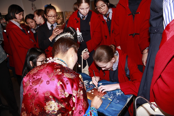 悉尼市圣凱瑟琳女子學(xué)校、圣艾夫斯高中和莫斯曼英格蘭教會(huì)小學(xué)學(xué)生體驗(yàn)貴州非物質(zhì)文化遺產(chǎn)技藝。(圖片由悉尼中國文化中心提供)