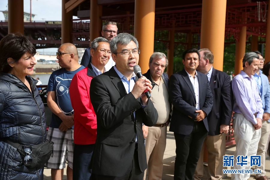 中國駐芝加哥總領(lǐng)事趙建在龍舟賽開幕式上說,比賽對于傳承中華文化、促進華人社區(qū)與其他社區(qū)交流意義重大。記者 汪平 攝