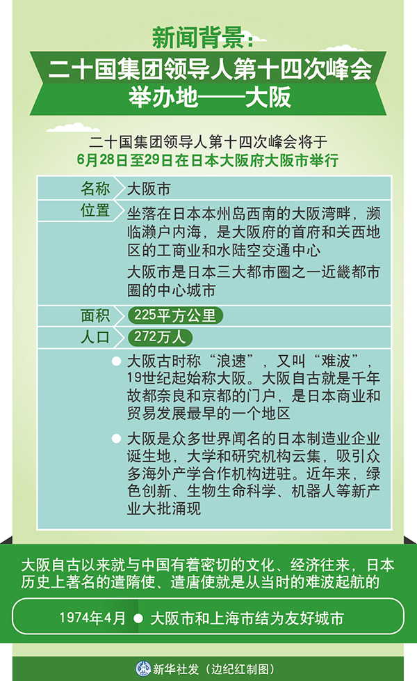 新華社日本大阪6月26日電 新聞背景:二十國集團(tuán)領(lǐng)導(dǎo)人第十四次峰會舉辦地——大阪