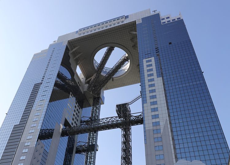 大阪梅田藍天大廈。藍天大廈是大坂府大坂市北區(qū)新梅田城的摩天大樓。地上40層樓、地下2層,高度約為173米,1993年3月完工。新華社記者杜瀟逸攝