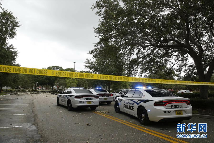 7月6日,在美國佛羅里達(dá)州普蘭泰申市,警車聚集在購物中心爆炸現(xiàn)場。新華社/美聯(lián)