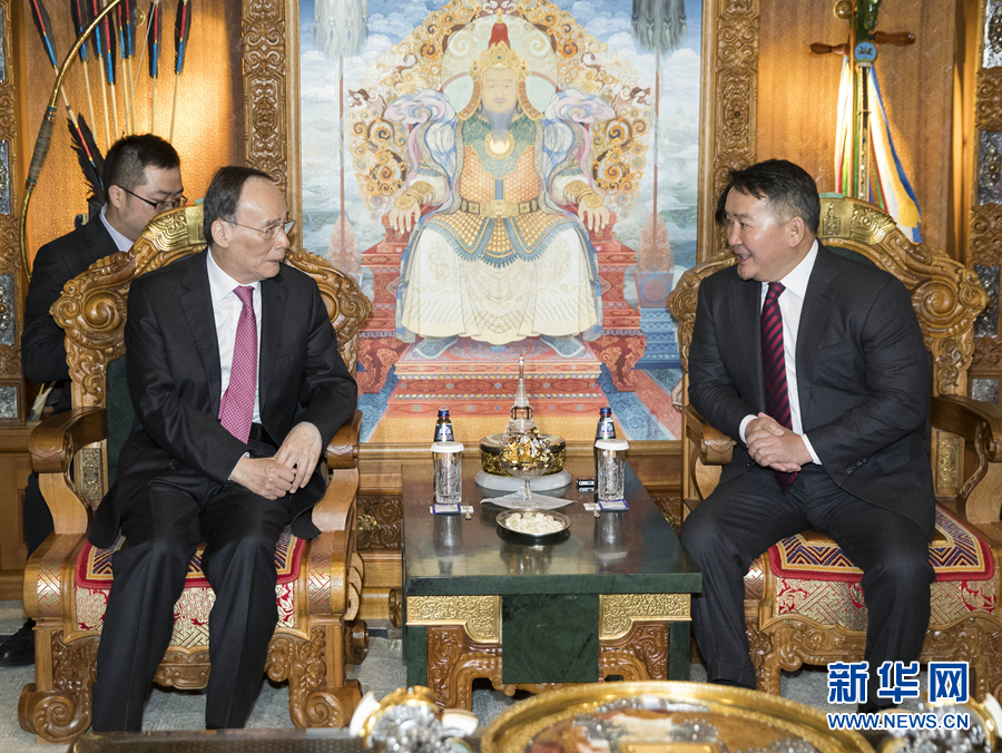 會(huì)見巴特圖勒嘎時(shí),王岐山表示,建交70年來(lái),友好合作始終是中蒙關(guān)系主流。當(dāng)前兩國(guó)關(guān)系站在新的歷史起點(diǎn)上。中蒙要牢牢把握正確政治方向,做互尊互信的戰(zhàn)略伙伴、互利互惠的合作伙伴、常來(lái)常往的友好伙伴、互幫互助的多邊合作伙伴。中方愿同蒙方一道努力,保持高層引領(lǐng),鞏固政治互信,深化互利合作與民間交流,加強(qiáng)地區(qū)國(guó)際合作,不斷充實(shí)全面戰(zhàn)略伙伴關(guān)系內(nèi)涵。