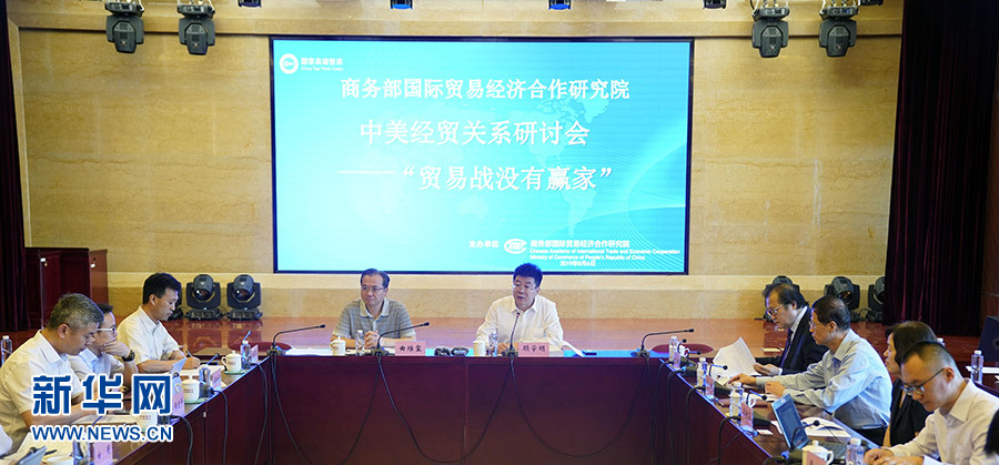 8月6日,主題為“貿(mào)易戰(zhàn)沒有贏家”的“中美經(jīng)貿(mào)關(guān)系研討會(huì)”在商務(wù)部國際貿(mào)易經(jīng)濟(jì)合作研究院舉行。新華社記者 金良快 攝