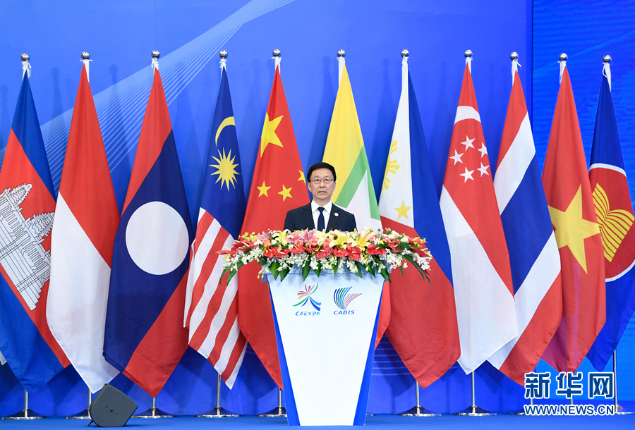 9月21日,第十六屆中國-東盟博覽會和中國-東盟商務(wù)與投資峰會在廣西南寧開幕。中共中央政治局常委、國務(wù)院副總理韓正出席開幕式并發(fā)表主旨演講。 新華社記者 申宏 攝