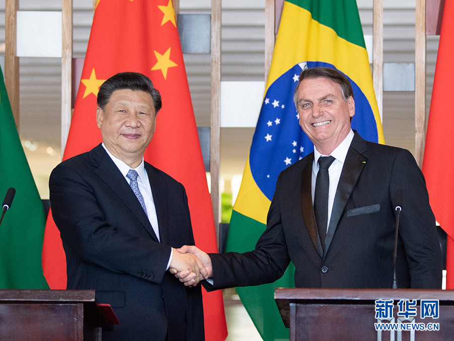 新華社巴西利亞11月13日電(記者陳威華 趙焱 陸佳飛)當(dāng)?shù)貢r(shí)間11月13日,國(guó)家主席習(xí)近平在巴西利亞同巴西總統(tǒng)博索納羅會(huì)談。