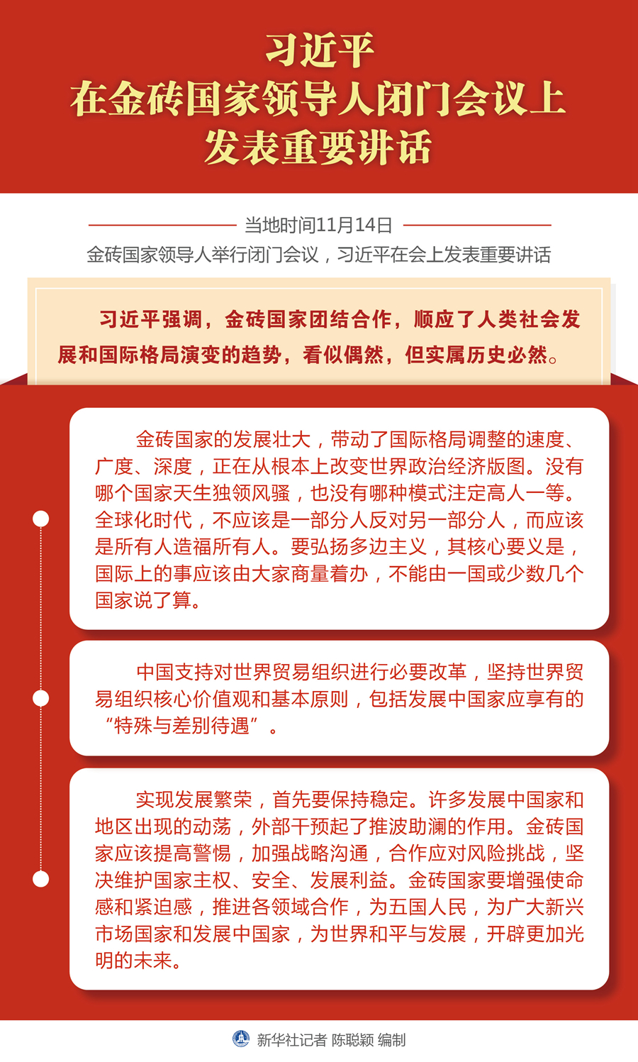 圖表:習(xí)近平在金磚國家領(lǐng)導(dǎo)人閉門會議上發(fā)表重要講話 新華社記者 陳聰穎 編制