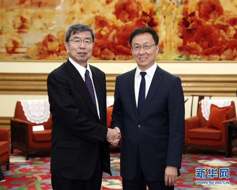 12月3日,中共中央政治局常委、國(guó)務(wù)院副總理韓正在北京中南海會(huì)見(jiàn)亞洲開(kāi)發(fā)銀行行長(zhǎng)中尾武彥。新華社記者 丁林 攝