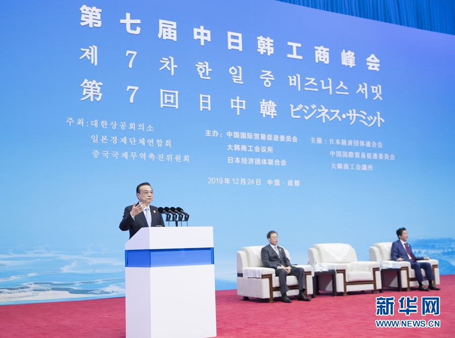 新華社成都12月24日電(記者鄭明達(dá)、張超群)國務(wù)院總理李克強(qiáng)24日上午在四川成都與韓國總統(tǒng)文在寅、日本首相安倍晉三共同出席第七屆中日韓工商峰會(huì)并致辭。