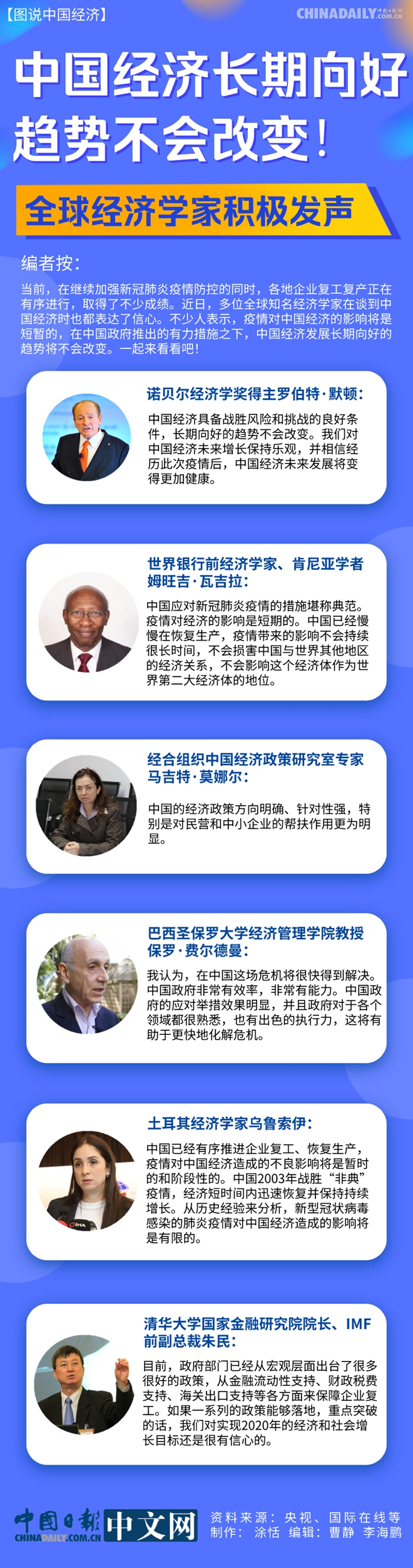 當前,在繼續(xù)加強新冠肺炎疫情防控的同時,各地企業(yè)復工復產正在有序進行,取得了不少成績?。近日,多位全球知名經濟學家在談到中國經濟時也都表達了信心。不少人表示,疫情對中國經濟的影響將是短暫的,在中國政府推出的有力措施之下,中國經濟發(fā)展長期向好的趨勢將不會改變。一起來看看吧!