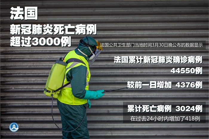 新華社巴黎3月30日電(記者陳晨)法國公共衛(wèi)生部門30日晚公布的數(shù)據(jù)顯示,法國累計新冠肺炎確診病例44550例,較前一日增加4376例;累計死亡病例3024例,在過去24小時內增加了418例。