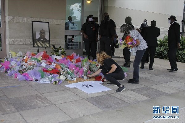 6月9日,在美國得克薩斯州休斯敦,人們在舉行弗洛伊德葬禮的教堂外獻(xiàn)花。因警察暴力執(zhí)法而死亡的非裔美國人弗洛伊德的葬禮9日在其“家鄉(xiāng)”——休斯敦市的一座教堂舉行。葬禮結(jié)束后,弗洛伊德的遺體被運往休斯敦一處墓地安葬。新華社發(fā)(勞承躍攝)
