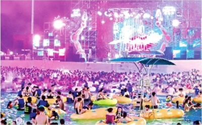 8月11日,武漢瑪雅海灘水公園舉辦的電子音樂(lè)節(jié)吸引眾多市民前來(lái)消夏狂歡。通訊員周顏佳 攝
