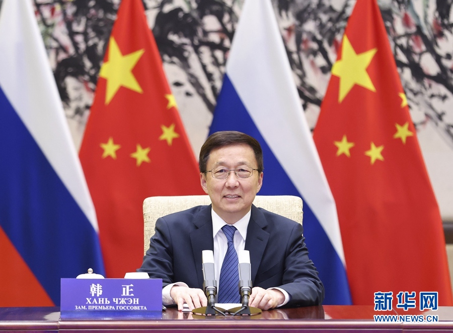 11月17日,中共中央政治局常委、國務(wù)院副總理、中俄投資合作委員會中方主席韓正與俄羅斯第一副總理、委員會俄方主席別洛烏索夫通過視頻方式共同主持中俄投資合作委員會第七次會議。新華社記者 龐興雷 攝
