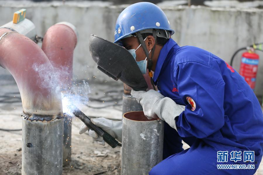 覺(jué)泰昂是正在接受項(xiàng)目組培訓(xùn)的當(dāng)?shù)毓と酥弧K麆倎?lái)項(xiàng)目組上班時(shí)僅是一名普通的安裝工,因?yàn)樗麑?duì)電焊感興趣,又掌握一些基本的焊接知識(shí),項(xiàng)目組的師傅就開(kāi)始教他做些簡(jiǎn)單的焊接工作。教覺(jué)泰昂電焊技能的師傅田志章說(shuō):“提前幫他調(diào)好尺寸,接好焊點(diǎn),每焊兩厘米左右就幫他檢查一下,一般的支架和管道焊接他已經(jīng)能做得很好。”