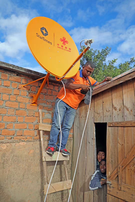 “萬村通”項(xiàng)目是2015年中非合作論壇約翰內(nèi)斯堡峰會(huì)提出的中非人文領(lǐng)域合作舉措之一,旨在為非洲國家的一萬個(gè)村莊接入衛(wèi)星數(shù)字電視信號(hào)。這一項(xiàng)目由中國的四達(dá)時(shí)代集團(tuán)承建。
