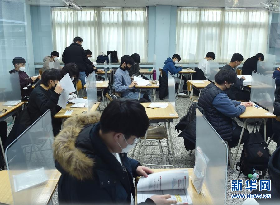 12月3日,在韓國京畿道城南市,考生們準(zhǔn)備參加考試。新華社發(fā)(李相浩 攝)