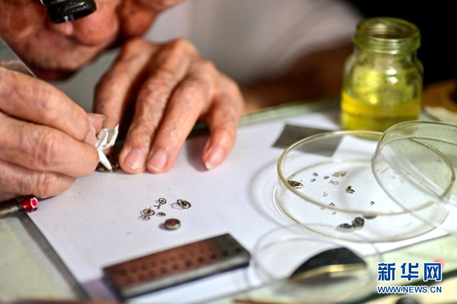 12月5日,在馬來(lái)西亞雪蘭莪州巴生的郁昌表行,韋華在維修手表。新華社發(fā)(張紋綜攝)