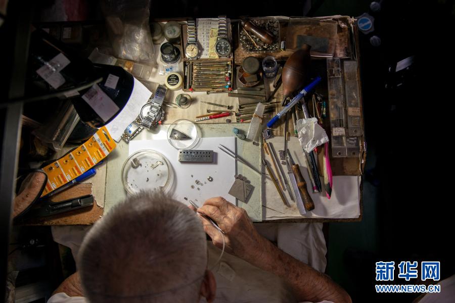 12月5日,在馬來西亞雪蘭莪州巴生的郁昌表行,韋華在維修手表。新華社發(fā)(張紋綜攝)