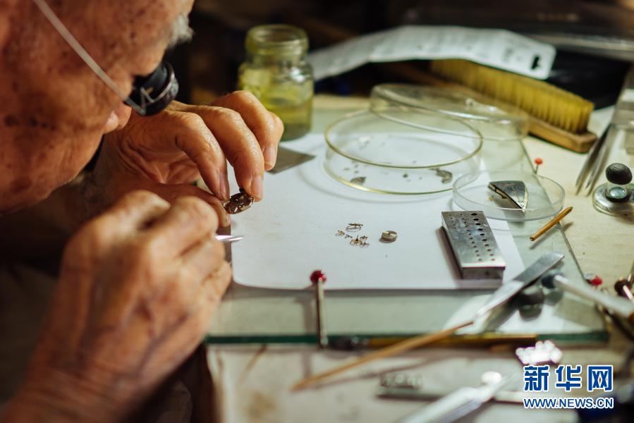 12月5日,在馬來西亞雪蘭莪州巴生的郁昌表行,韋華在維修手表。新華社記者 朱煒 攝