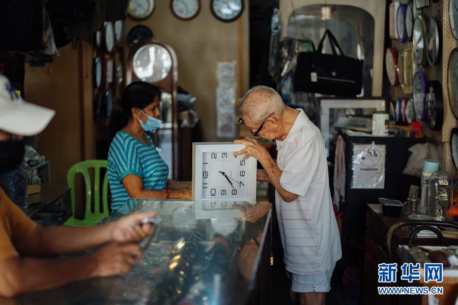 12月5日,在馬來(lái)西亞雪蘭莪州巴生的郁昌表行,韋華查看顧客送來(lái)的時(shí)鐘。新華社記者 朱煒 攝