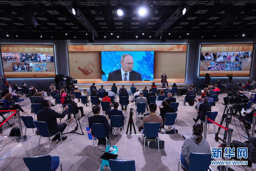 12月17日,在俄羅斯首都莫斯科,普京年度記者會以視頻方式舉行。當(dāng)日,俄羅斯總統(tǒng)普京在莫斯科召開年度記者會。受疫情影響,本次年度記者會以普京在莫斯科郊區(qū)的官邸通過視頻與記者交流的方式舉行。新華社發(fā)(葉甫蓋尼·西尼岑攝)