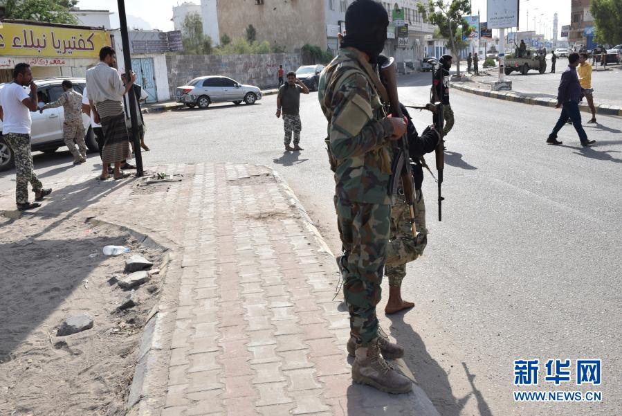 12月30日,在也門亞丁,政府軍士兵在爆炸后封鎖了亞丁國(guó)際機(jī)場(chǎng)的入口。新華社發(fā)(穆拉德·阿卜杜攝)