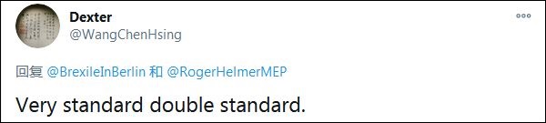 他在12月28日的一條推特中請(qǐng)求外界不要再將變異新冠病毒稱為“起源于英國”,而只是“在英國發(fā)現(xiàn)”。但這條推特徹底“翻車”,大量網(wǎng)民在評(píng)論中挖出赫爾默曾將新冠病毒污蔑為“中國病毒”的評(píng)論,指責(zé)他演繹“非常標(biāo)準(zhǔn)的雙重標(biāo)準(zhǔn)”。