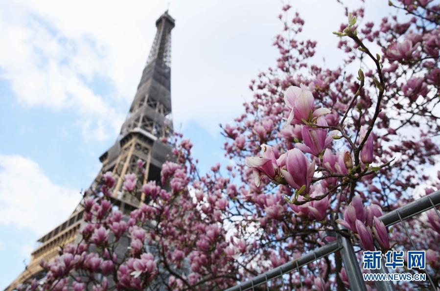 這是3月19日在法國(guó)巴黎埃菲爾鐵塔腳下的戰(zhàn)神廣場(chǎng)拍攝的盛放的玉蘭花。新華社記者高靜攝