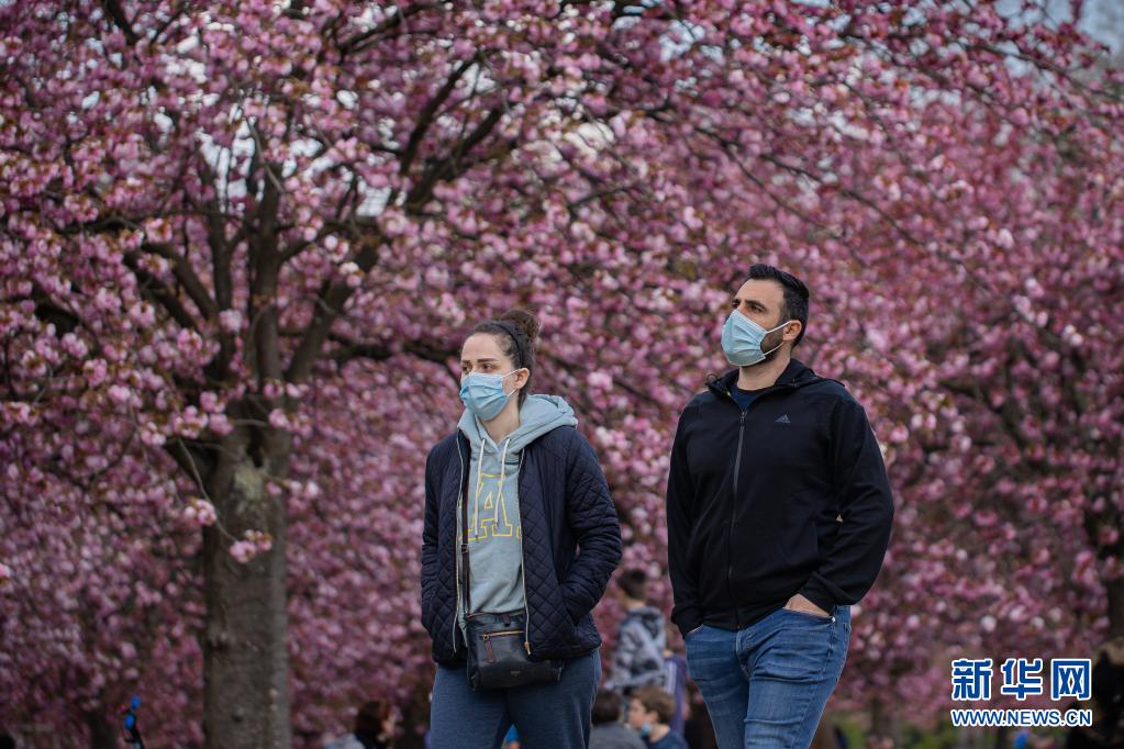 4月20日,人們?cè)诜▏?guó)巴黎近郊的國(guó)璽公園欣賞櫻花。